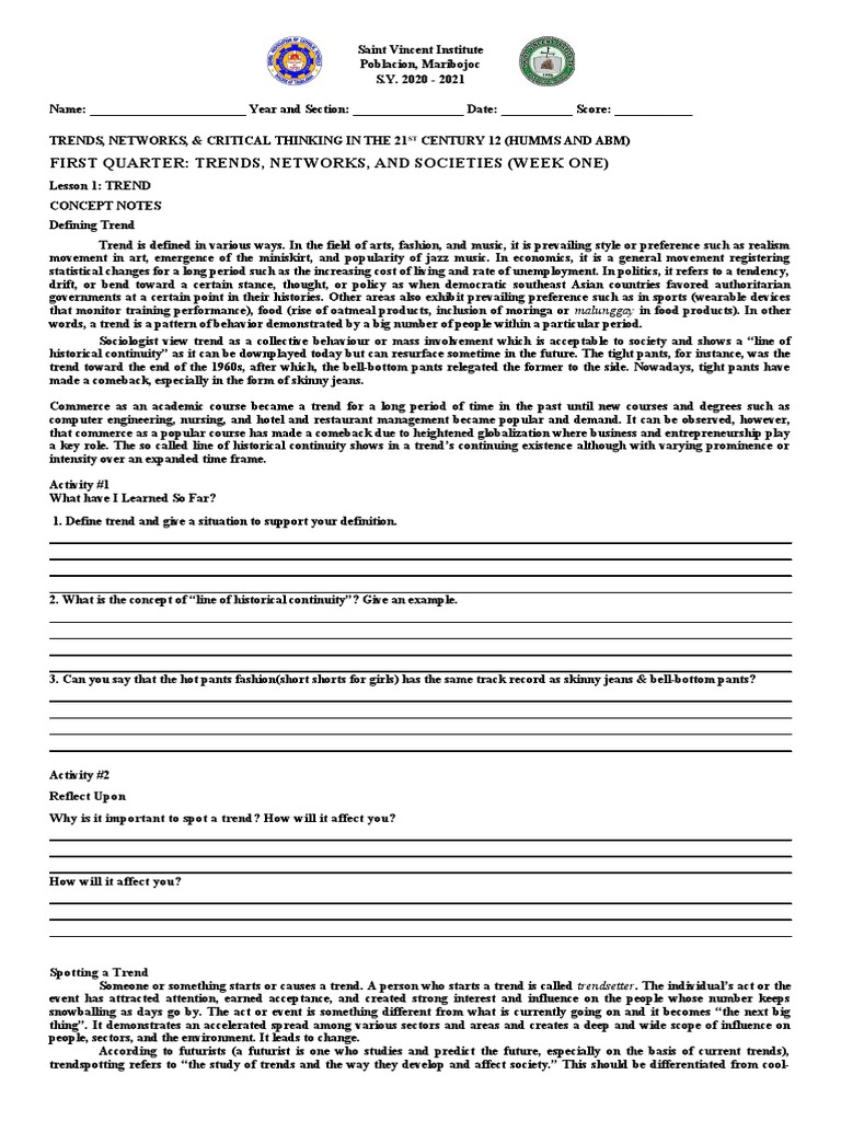 TRENDS, NETWORKS, & CRITICAL THINKING IN THE 21ST CENTURY 12 (HUMMS AND ABM)
