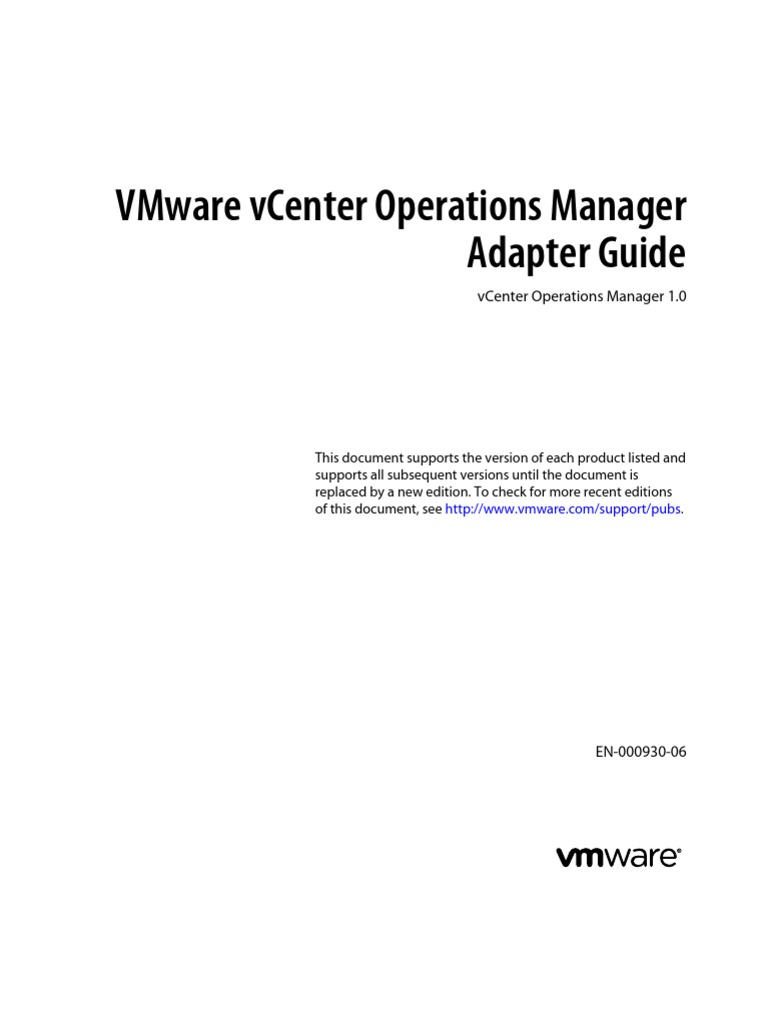 EN-000930-02 n Changed the title to VMware vCenter Operations Manager Adapter Guide.