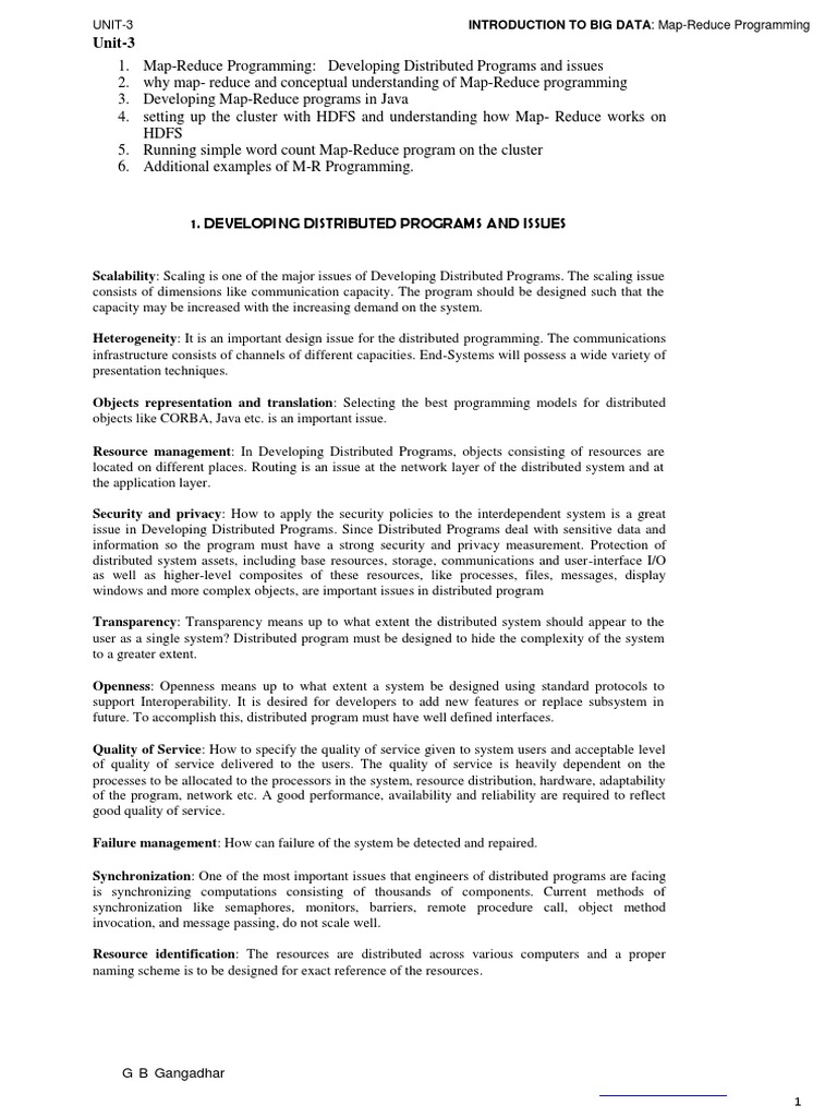 1. Map-Reduce Programming: Developing Distributed Programs and issues