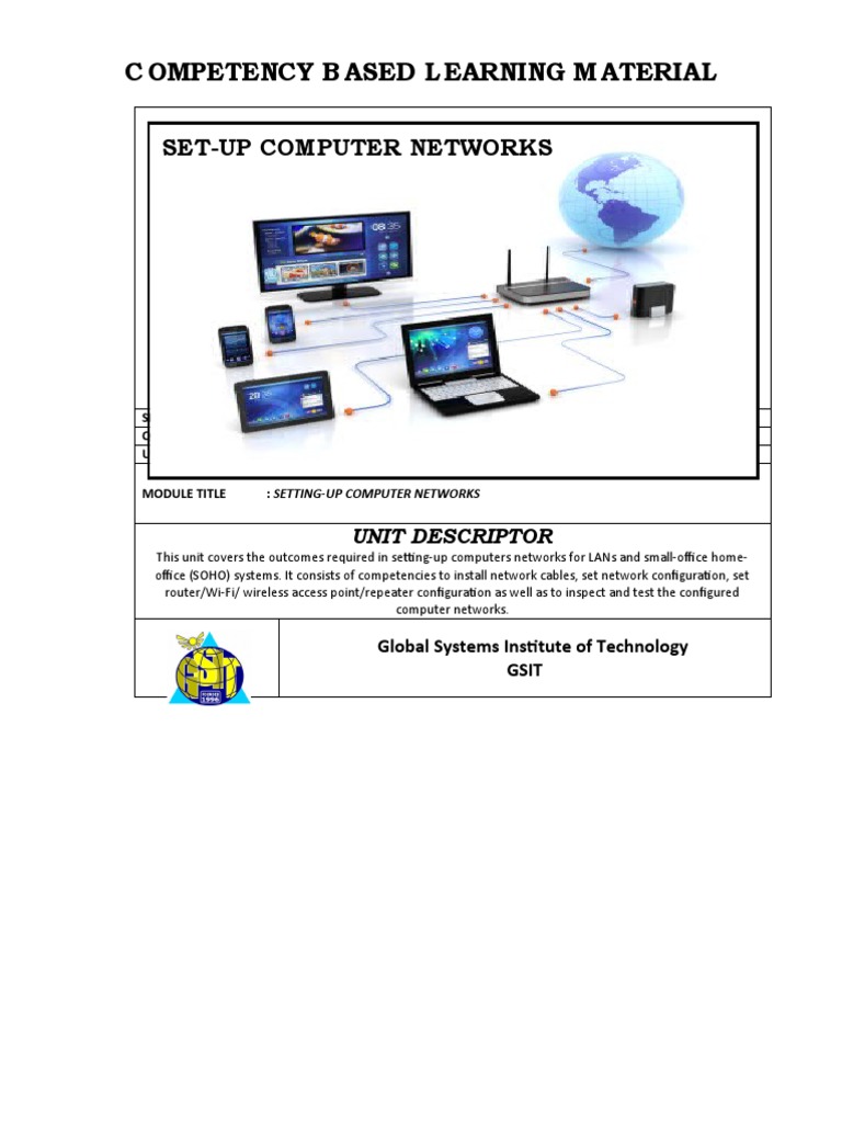 MODULE TITLE : SETTING-UP COMPUTER NETWORKS