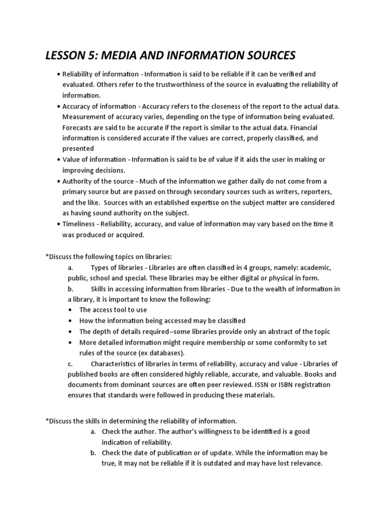 LESSON 5: MEDIA AND INFORMATION SOURCES