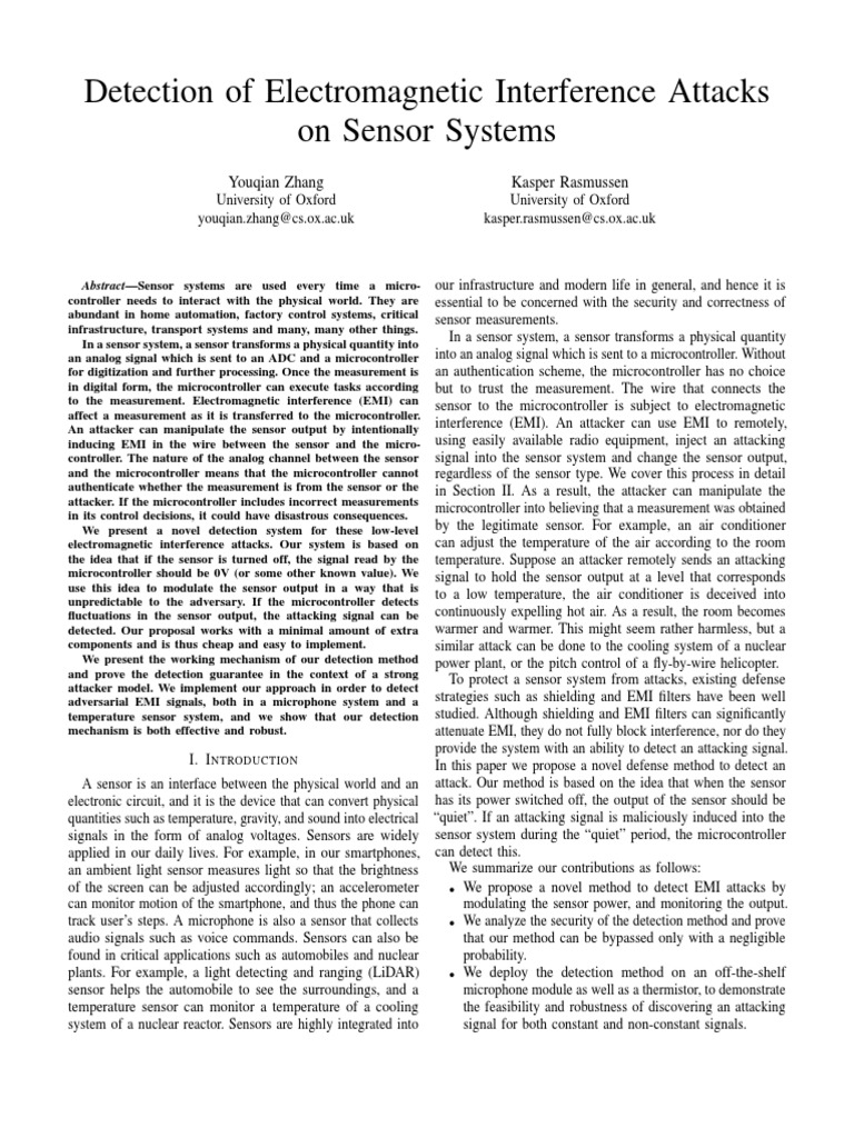 sensor systems. “Non-invasive EMI-based fault injection attack against cryptographic