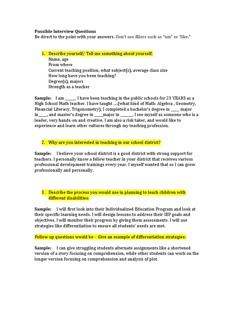 Sample: I am ______. I have been teaching in the public schools for 23 YEARS as a