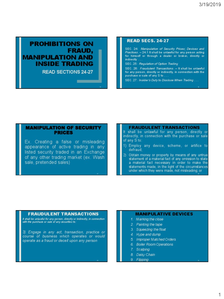 FRAUD, SEC. 24: Manipulation of Security Prices; Devices and