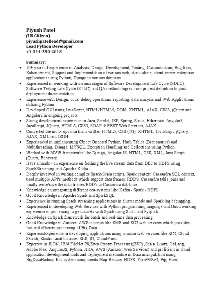 Experience as a Python Developer, proficient coder in multiple languages and environments