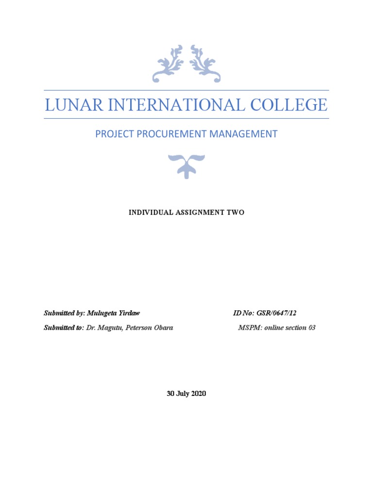 procurement, also it helps to avoid proliferating problems and questions in the project