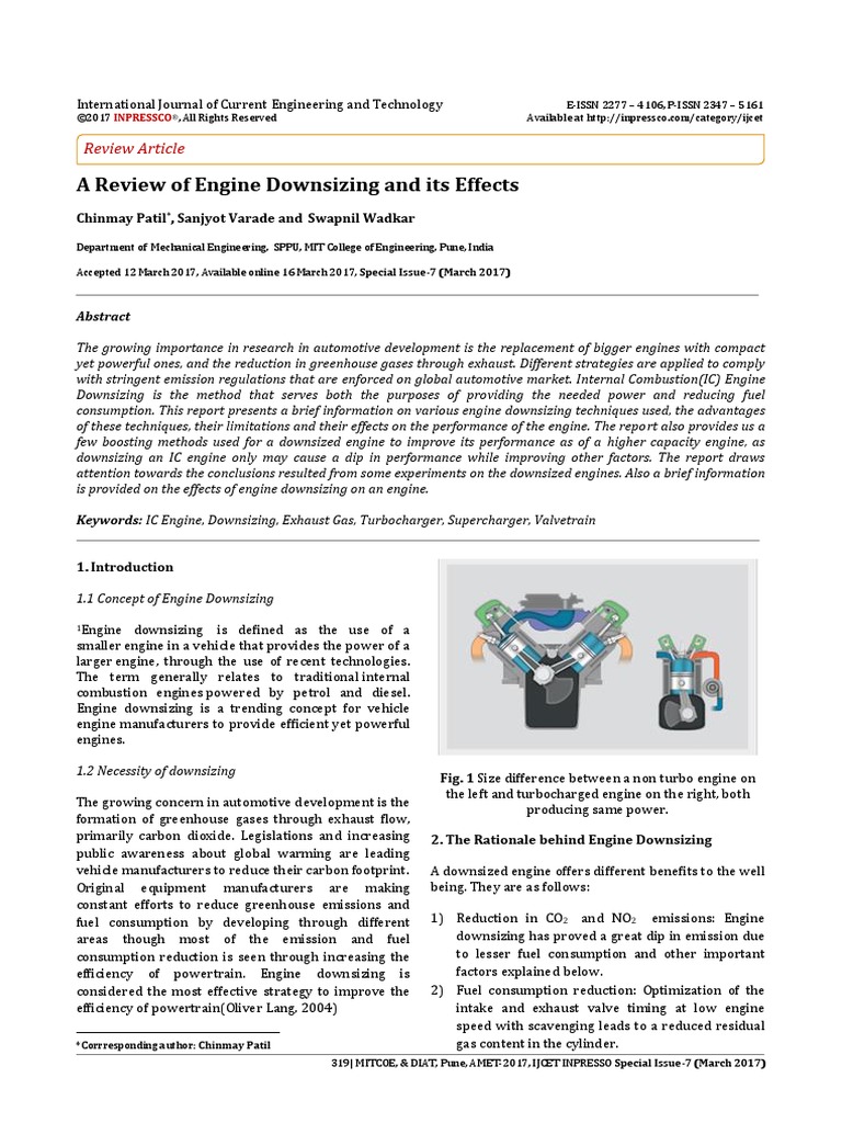 Chinmay Patil et al A Review of Engine Downsizing and its Effects