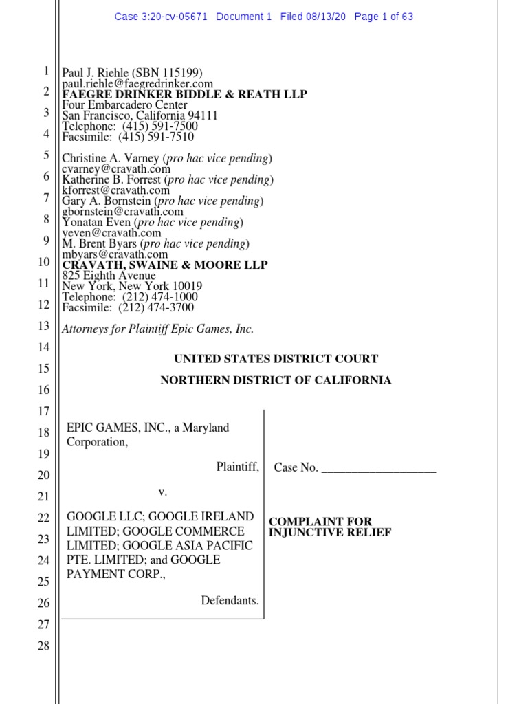 Faegre Drinker Biddle & Reath LLP: Attorneys For Plaintiff Epic Games, Inc
