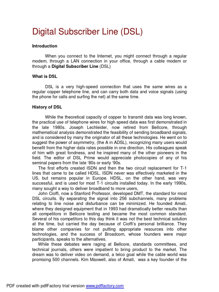 n DSL doesn't necessarily require new wiring; it can use the phone line you