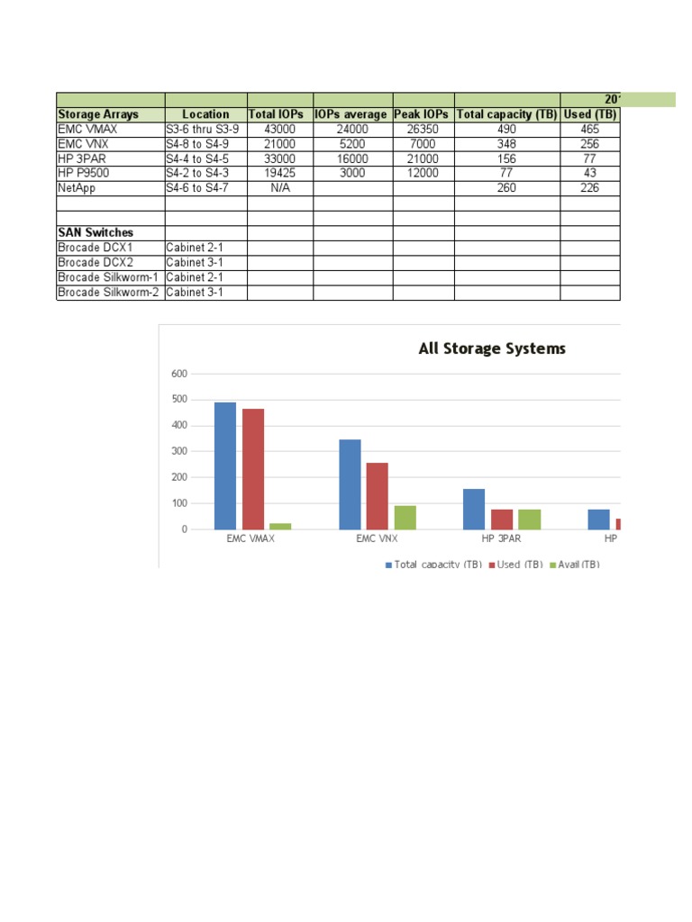Storage Arrays Location Total IOPs IOPs average Peak IOPs Total capacity (TB) Used (TB)