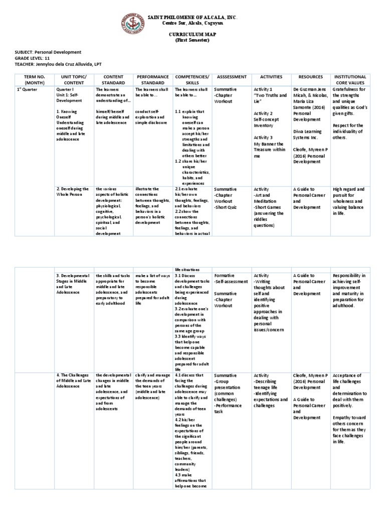 1st Quarter Quarter I The learners The learners shall The learners shall Summative Activity 1 De Guzman Jens Gratefulness for