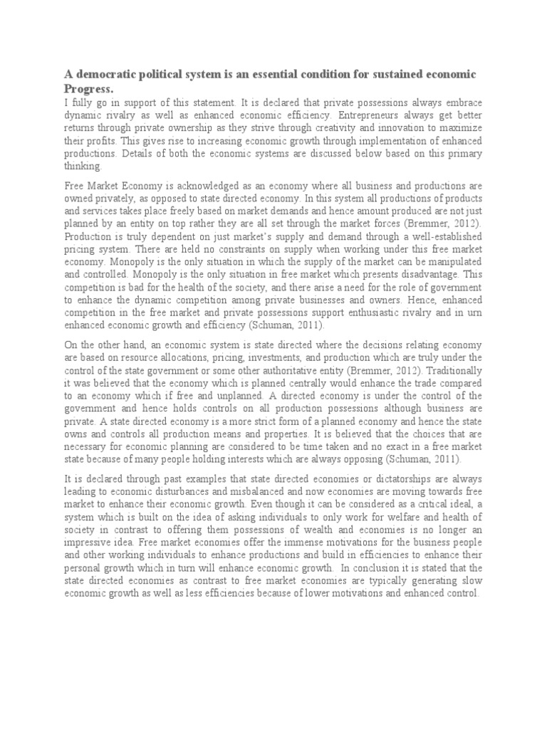 A democratic political system is an essential condition for sustained economic