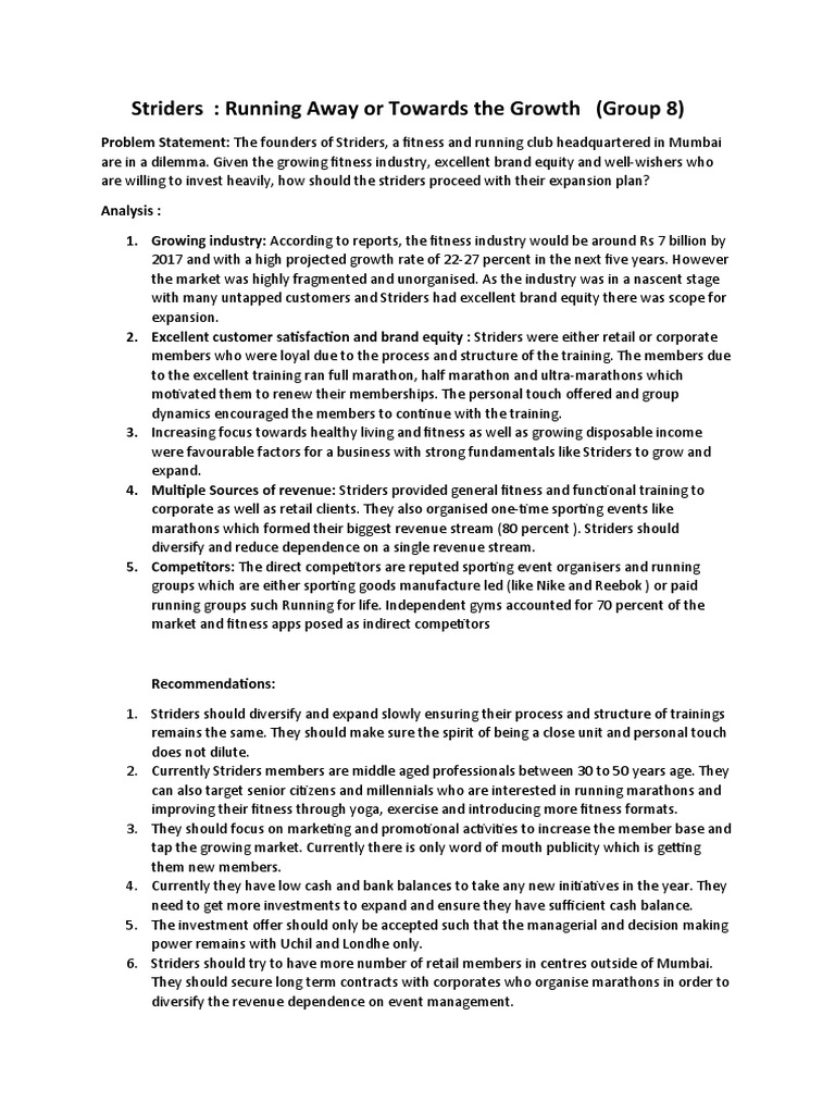 marathons which formed their biggest revenue stream (80 percent ). Striders should