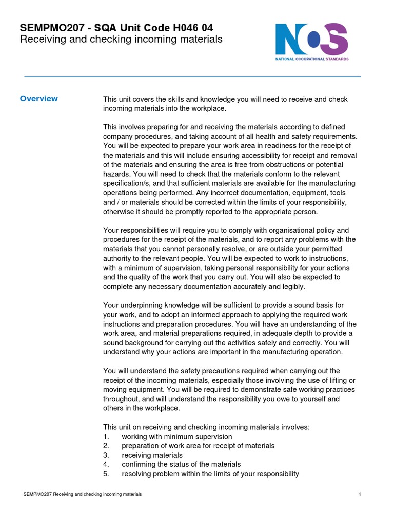 Overview This unit covers the skills and knowledge you will need to receive and check