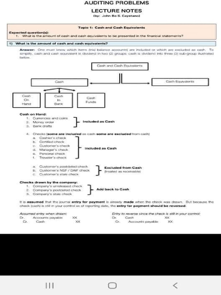 Topic 1: Cash and Cash Equivalents