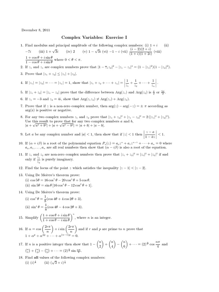 1. Find modulus and principal amplitude of the following complex numbers: (i) 1 + i (ii)