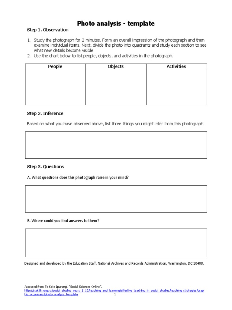 2. Use the chart below to list people, objects, and activities in the photograph.