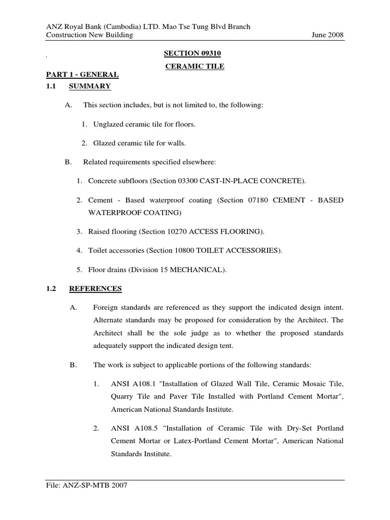 A. ANSI installation standards: comply with referenced ANSI 108 series of tile