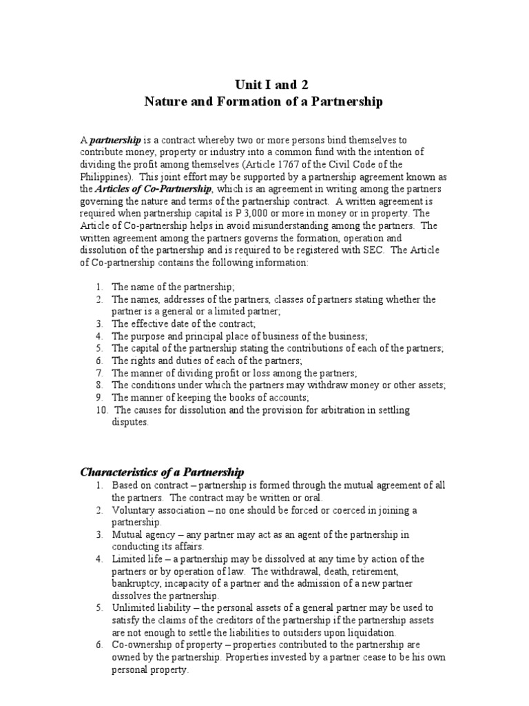Nature and Formation of a Partnership