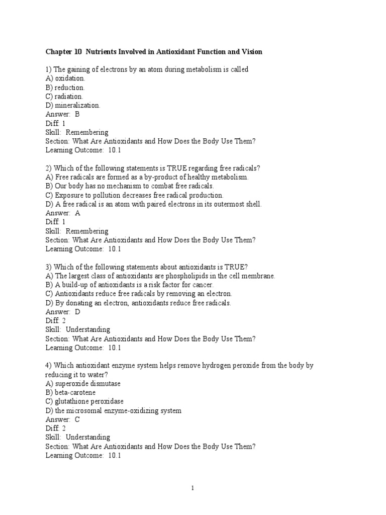 Chapter 10 Nutrients Involved in Antioxidant Function and Vision
