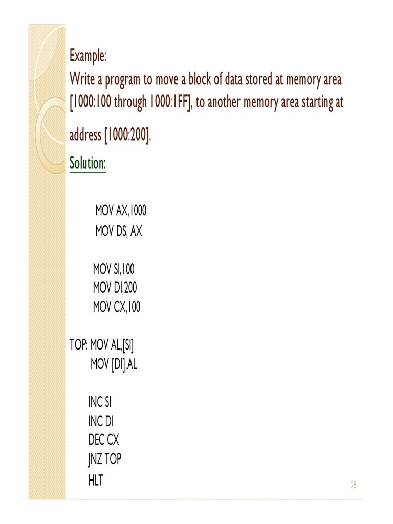 Write a program to move a block of data stored at memory area