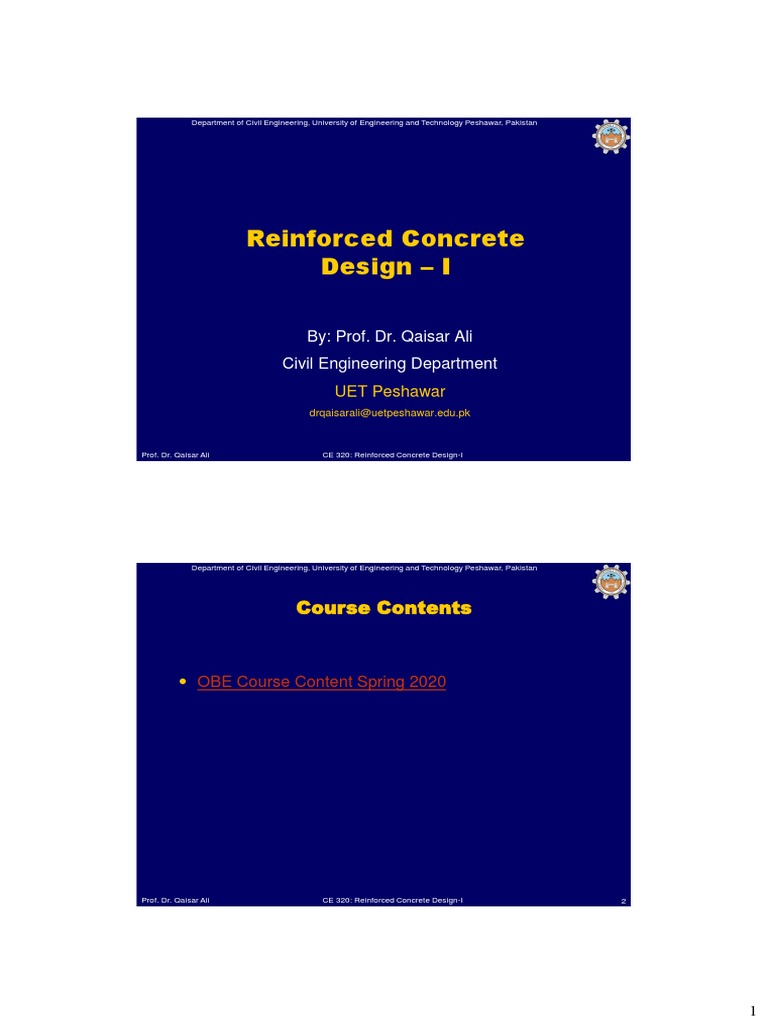 Prof. Dr. Qaisar Ali CE 320: Reinforced Concrete Design-I 3