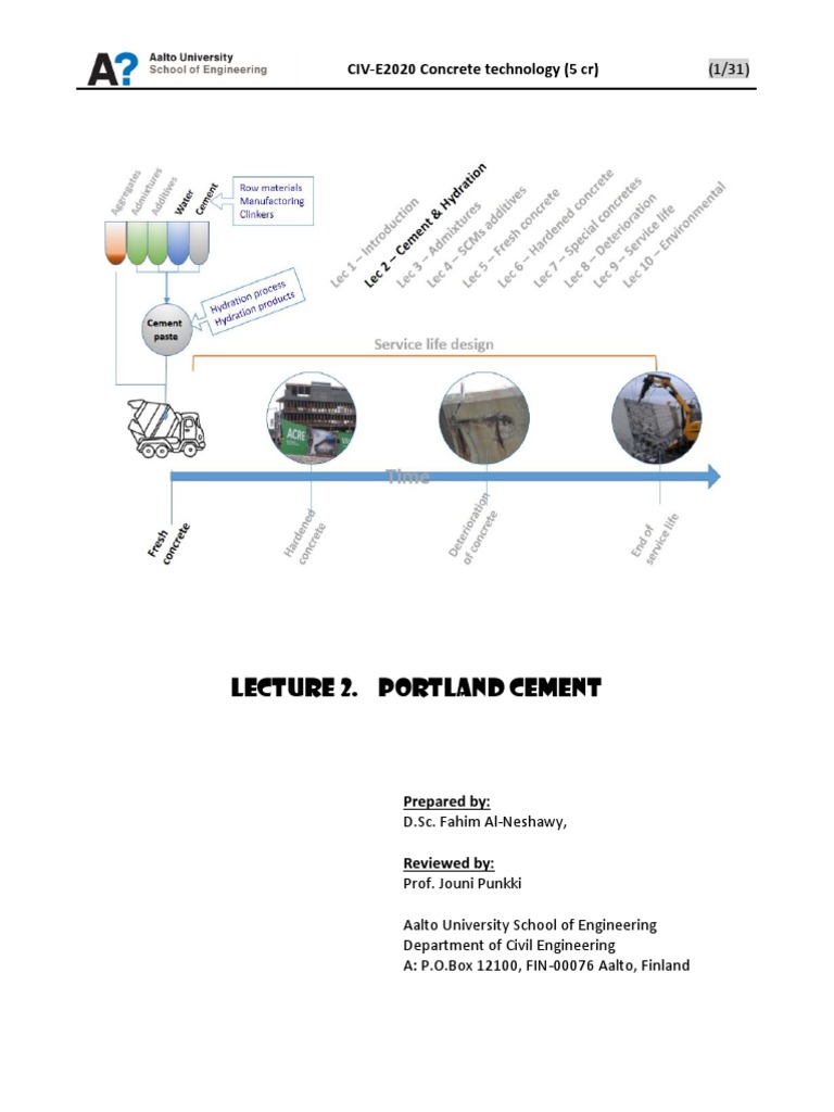 Lecture 2. Portland Cement: CIV-E2020 Concrete Technology (5 CR)