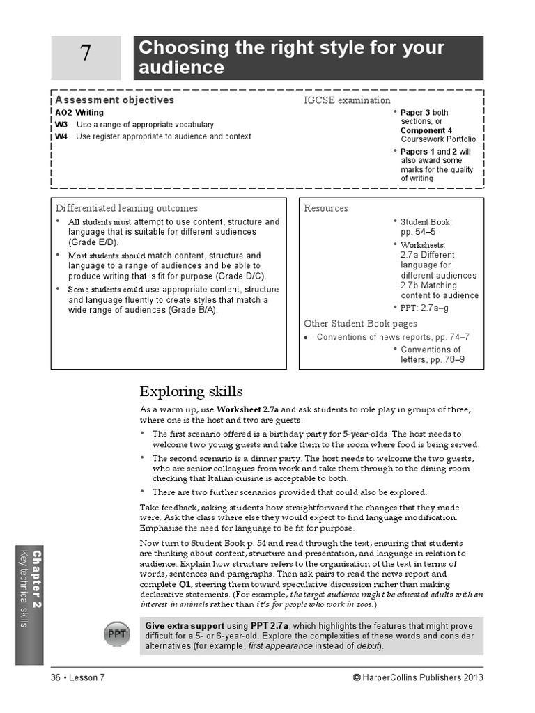 wide range of audiences (Grade B/A). • PPT: 2.7a–g