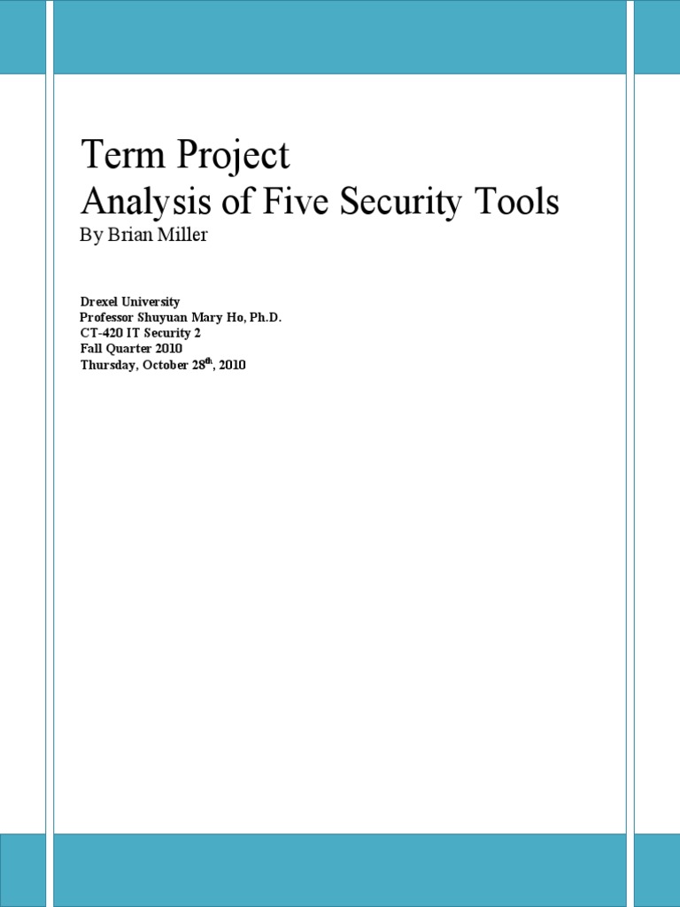 In this document, five IT Security Tools are analyzed. The tools analyzed are Parmavex