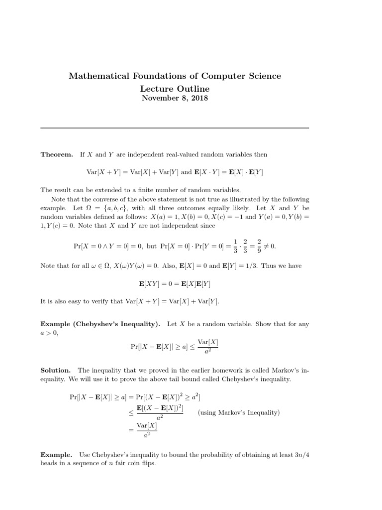 Var[X + Y ] = Var[X] + Var[Y ] and E[X · Y ] = E[X] · E[Y ]