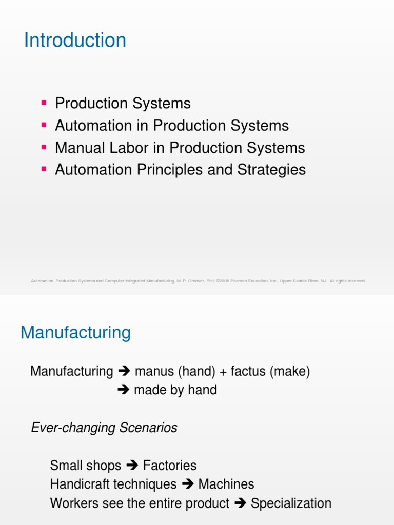 Automation, Production Systems and Computer-integrated Manufacturing, M. P. Groover, PHI; ©2008 Pearson Education, Inc., Upper Saddle River, NJ. All rights reserved.