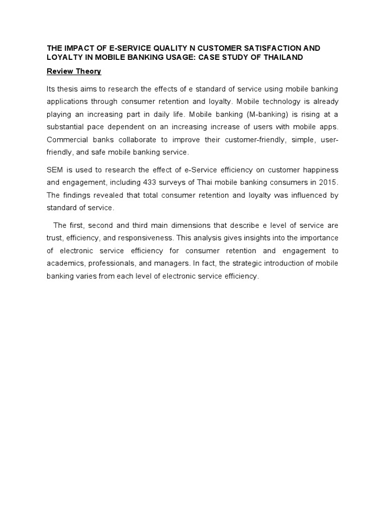Its thesis aims to research the effects of e standard of service using mobile banking