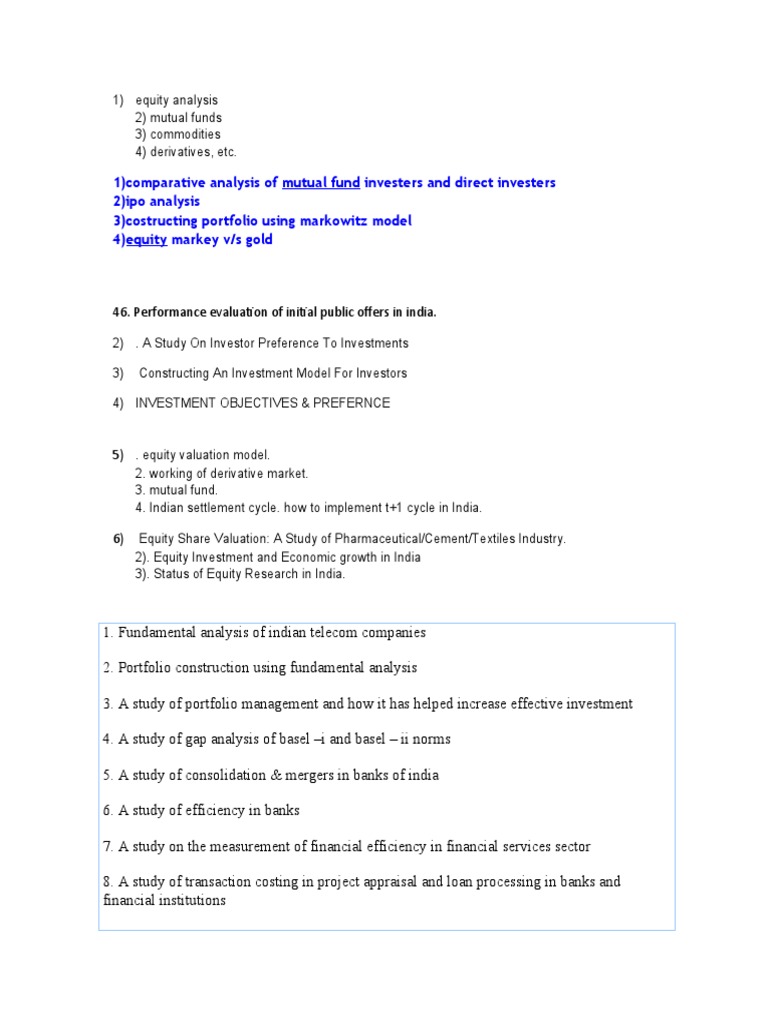 6) Equity Share Valuation: A Study of Pharmaceutical/Cement/Textiles Industry.