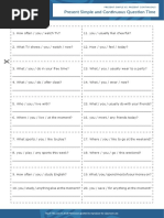 Aim question in the present simple and one in the present continuous.