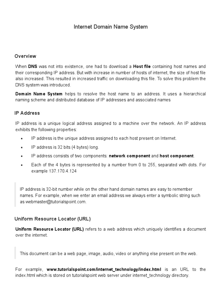 For example http:// www.tutorialspoint.com / internet_technology /index.htm. where: