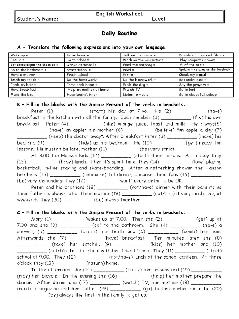 B – Fill in the blanks with the Simple Present of the verbs in brackets: