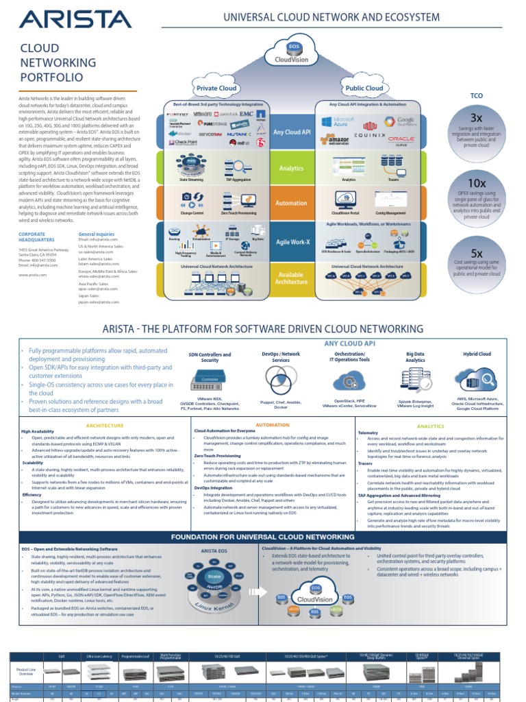 extensible operating system – Arista EOS®. Arista EOS is built on Any Cloud API migration and integration