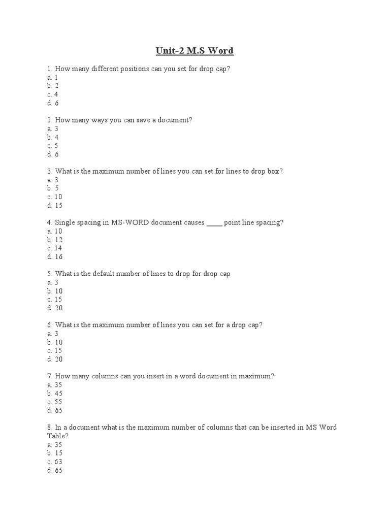 8. In a document what is the maximum number of columns that can be inserted in MS Word