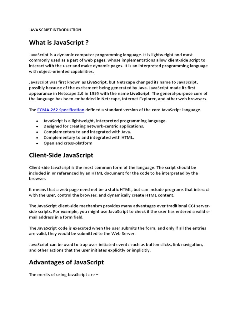 appearance in Netscape 2.0 in 1995 with the name LiveScript. The general-purpose core of