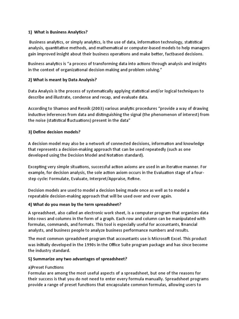 A d v a n t a g e s o f B u s i n e s s A n a l y ti c s