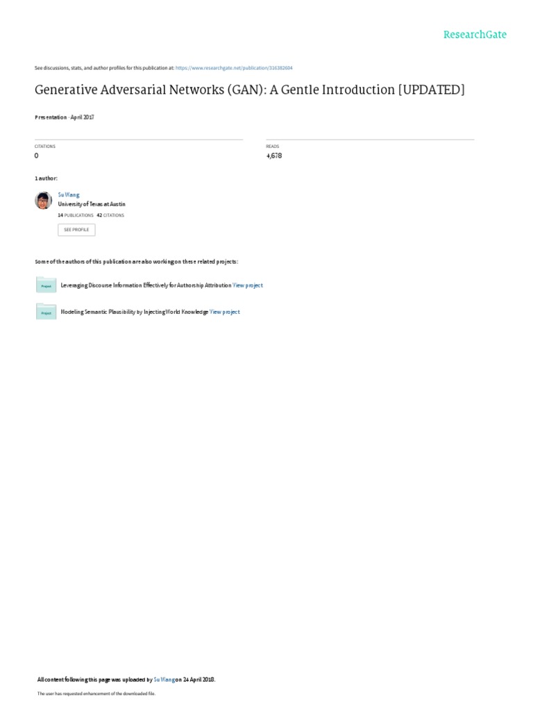 Network (GAN) [1], invented by Ian Goodfellow of Google Brain, overview the