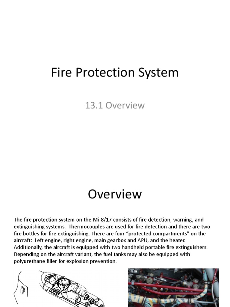 The fire protection system on the Mi-8/17 consists of fire detection, warning, and