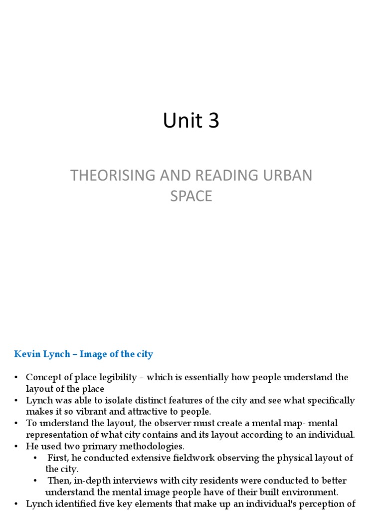 • Lynch was able to isolate distinct features of the city and see what specifically