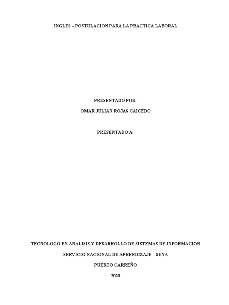 INGLES – POSTULACION PARA LA PRACTICA LABORAL