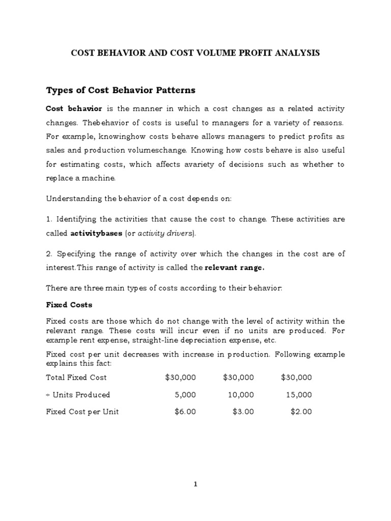 COST BEHAVIOR AND COST VOLUME PROFIT ANALYSIS