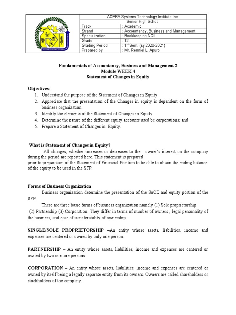 1. Understand the purpose of the Statement of Changes in Equity