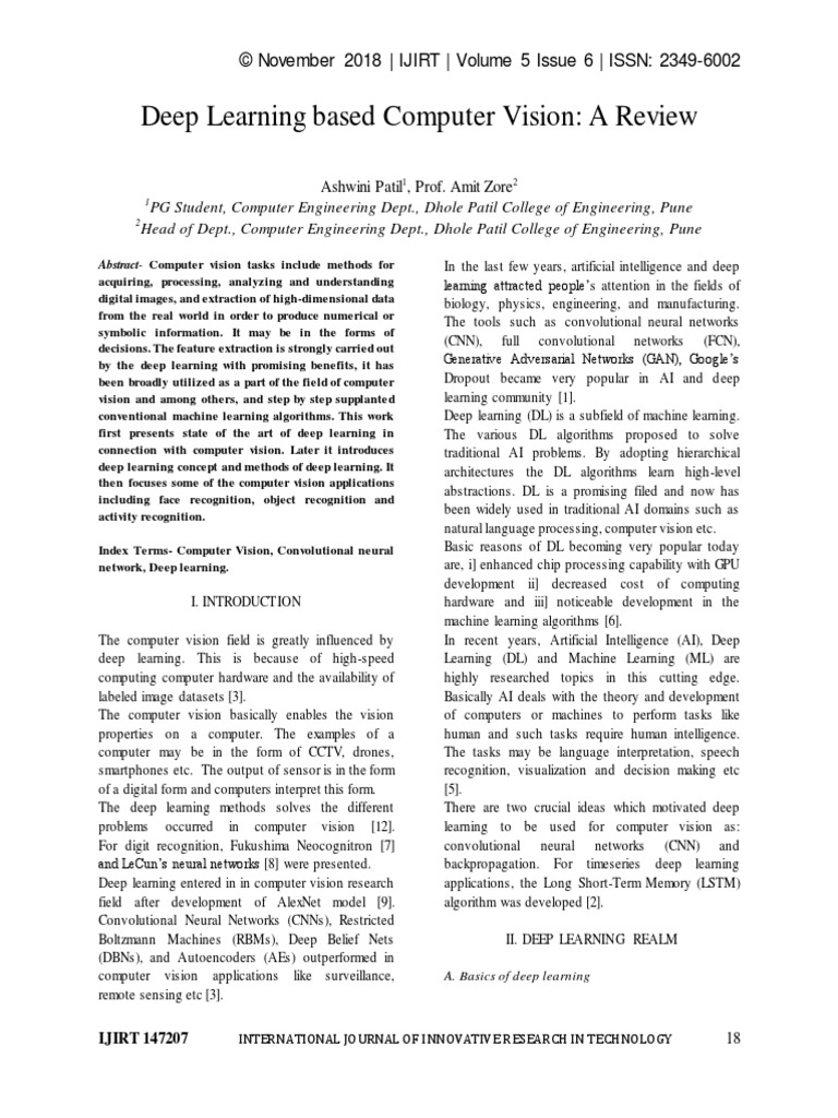 Abstract- Computer vision tasks include methods for In the last few years, artificial intelligence and deep