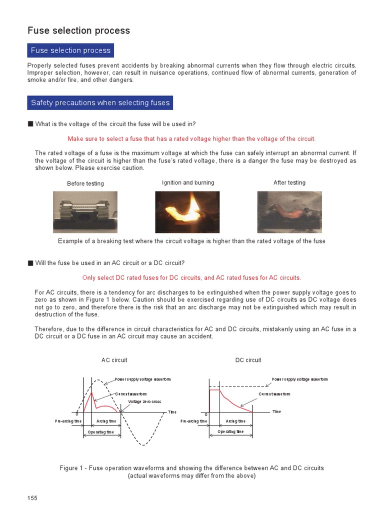 Therefore, due to the difference in circuit characteristics for AC and DC circuits, mistakenly using an AC fuse in a