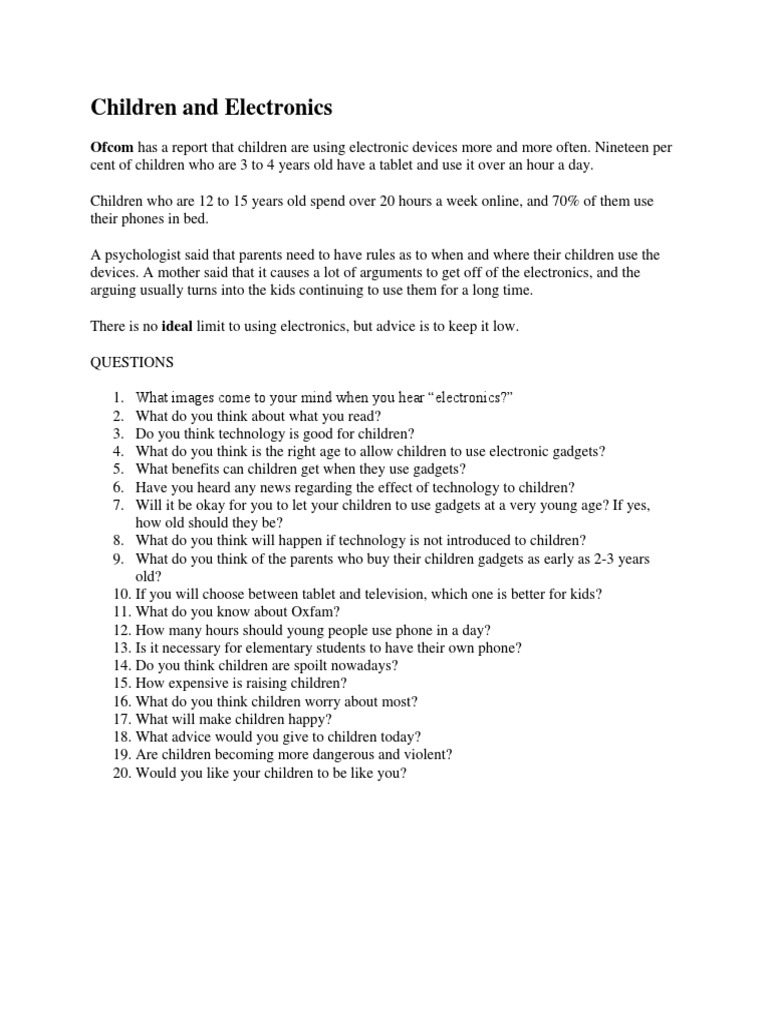 There is no ideal limit to using electronics, but advice is to keep it low.