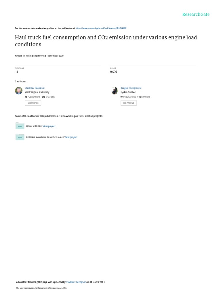 significantly decrease fuel consumption and CO2 emission Hays, M.R., 1990, “Trucks,” in Surface Mining Handbook, Kennedy, B.A.,
